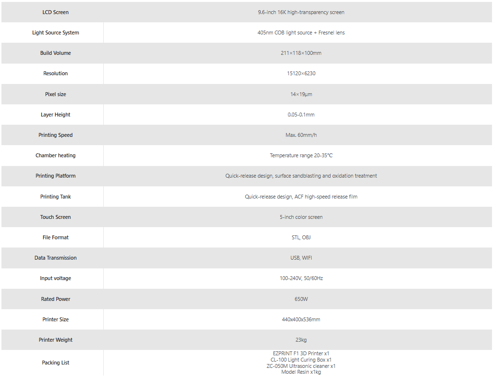 With a 16K ultra-high-resolution LCD and 14×19μm pixel size, the EZPRINT-F1 captures every detail with precision. Its high-power light source ensures 95% uniform lighting for consistent printing results. Designed for mass production, it features a large platform and high-speed printing technology for maximum efficiency.